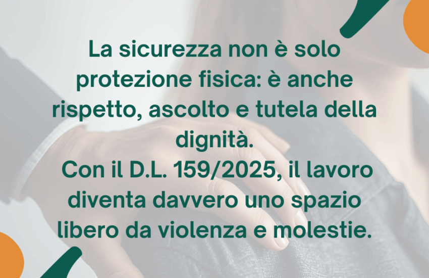 Questo passo segna una svolta fondamentale: la tutela della dignità, della parità e delle pari opportunità entra pienamente nel quadro della sicurezza sul lavoro.